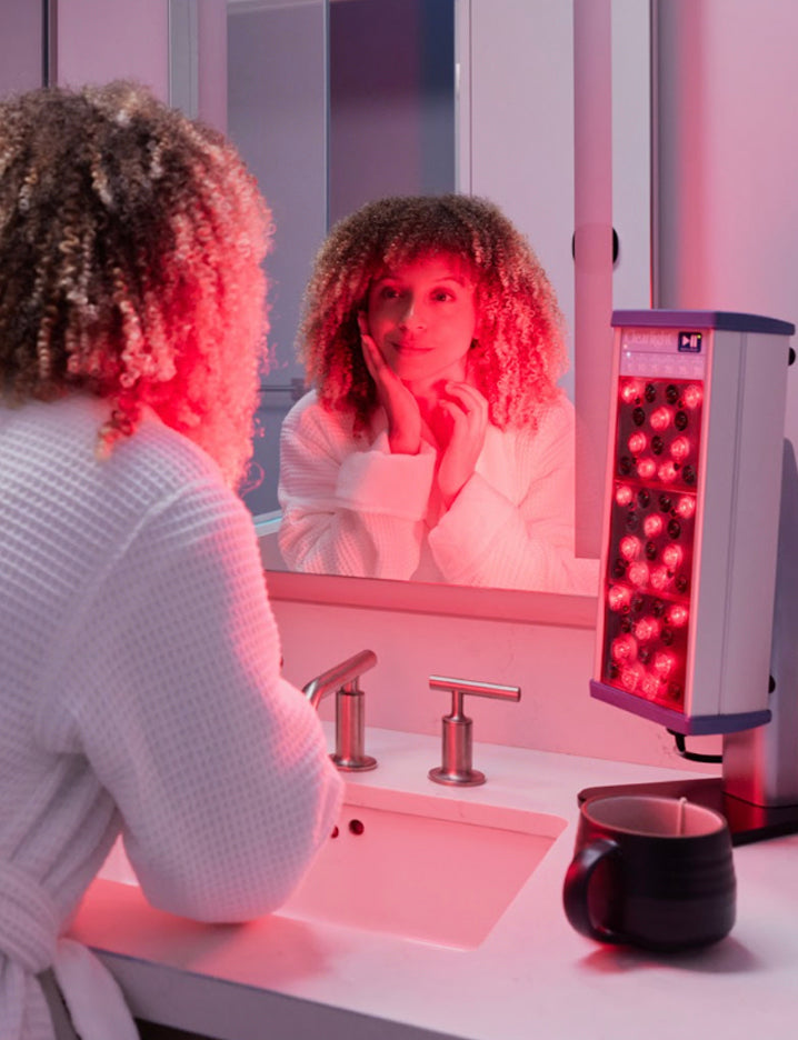 Red light therapy, also known as photobiomodulation, enhances your health and wellbeing by using both red light (650nm) and near infrared light (850nm) to tap into the fundamental benefits of natural light on the human body. When the wavelengths penetrate your skin, it produces a biochemical effect in your cells boosting energy production and providing your body with the TLC it needs to function at the highest level.